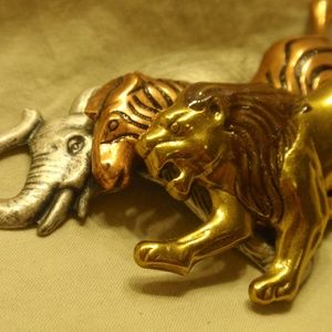 Elephant, Zebra, and Lion Brooch - Three Toned