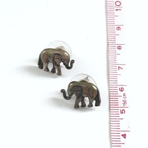 Cute elephant studs with the trunks up. Antique burnished bronze finish. Pre-loved