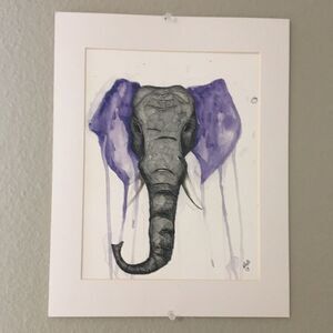 Gorgeous hand painted photo of an elephant from art Basel Miami. Two small holes from hanging with tacks.