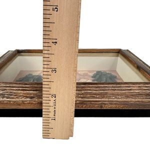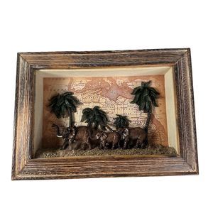 This stunning piece of art features a beautiful display of 3D elephants in a shadow box wood frame. The elephants are intricately designed and give a lifelike effect, making it a perfect addition to any collection. The piece measures 7 inches in height, 10 inches in length and 2 1/2 inches in width, making it a small yet impactful addition to any room.
