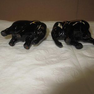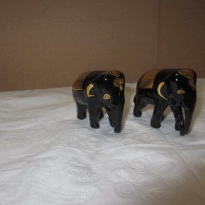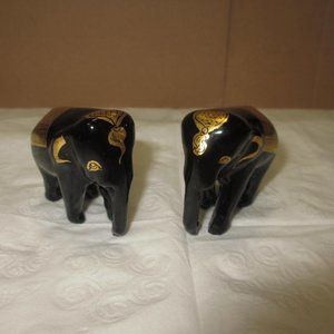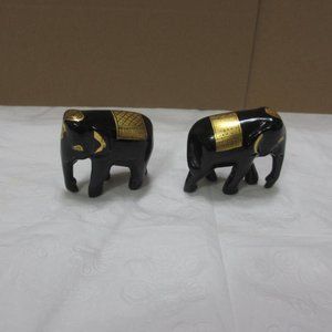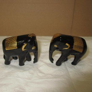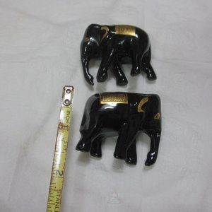 Elephants statuettes figurines Set 2 pc Lot Vintage Gilded Black and Gold