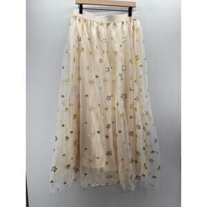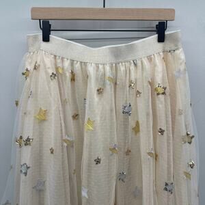 Elestory Cream Tulle Long Skirt Womens Large Silver Gold Stars Mommy & Me