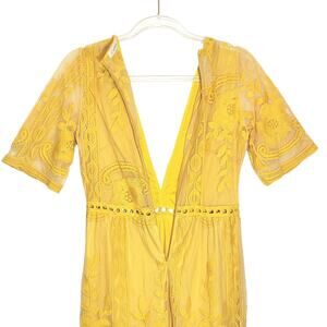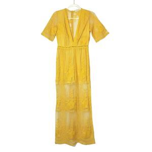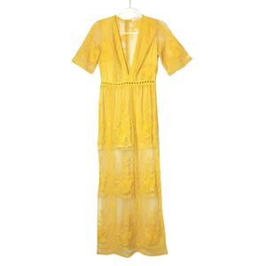 Eleter Yellow Lace Maxi Romper Dress Bohemian Boho Romantic Party Summer Size S