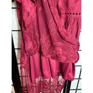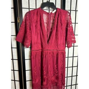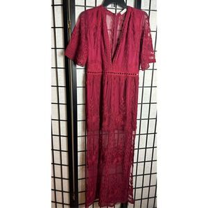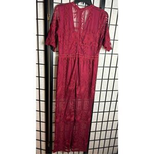 Eleter Burgundy Lace Short Sleeve Romper Dress