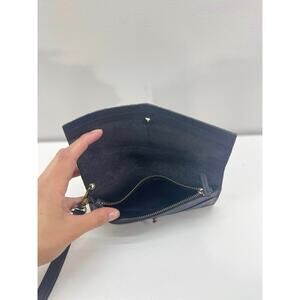 —Measurements: 7.5" wide and 4" tall; 6.5" detachable leather wristlet strap