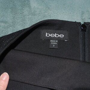 Add a touch of elegance and sophistication to your outfit with this timeless black bebe mini skirt in size 0. Perfect for any occasion, this versatile piece is a must-have for your fashion collection.