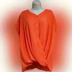 Elevated Neon Crossover Draped Top XL Oversized Button Blouse Statement Piece