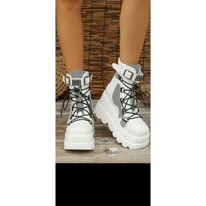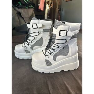 Elevated platform punk style, boots, stylish design combo zipper in the back netting ,studs and more .size 8.5.