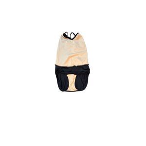 Elegant bodysuit, perfect for adding a touch of sophistication to your wardrobe. Features a black base overlaid with a sheer mesh dotted pattern across the bodice, creating a subtle yet eye-catching design. The silhouette includes thin straps and a ruched front, enhancing the texture and form of the piece. Fully lined for comfort and support, this sleeveless one-piece combines style and practicality. Ideal for a night out, a chic party, or as a unique layering piece under a blazer or cardigan.