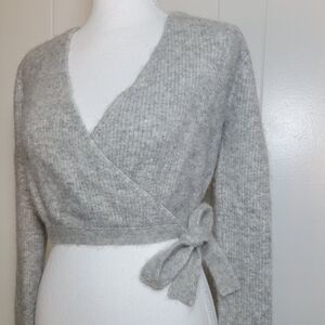 Eleven Six Gray Wrap Waist Cropped Sweater Baby Alpaca & Merino Wool Blend SM