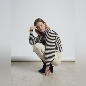 Beautiful - and super cozy - "Mia" sweater in a classic striped pattern ("Ivory/Navy Stripe").