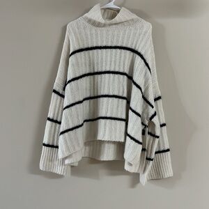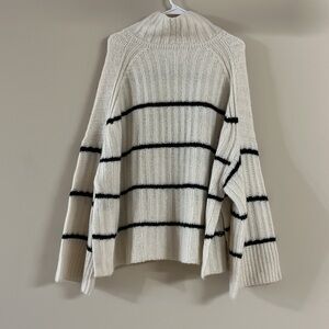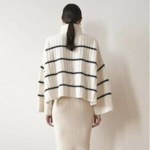 Eleven Six Poncho Stripe Sweater Alpaca Wool Ivory Black
