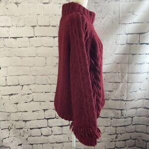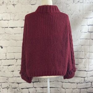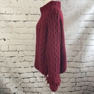 Eleven Six Sweater Womens Large Lorena Fringed Cable Knit Alpaca Blend Burgundy