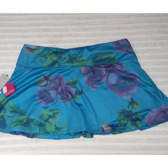 Eleven by Venus Williams Blue Floral Pleated Flutter Skirt Skort Large New $65