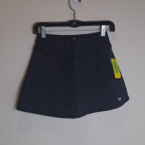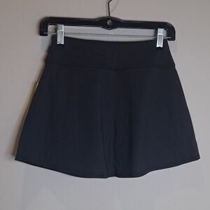 Size Extra Small. New with tags. Black. Front Exterior pockets on each side. Shorts underneath with pockets on each side. Waist is 11.5" flat unstreched and 12.5" in length. One of the shorter skirts this brand offers. I have many styles in this brand for great bundling opportunities.