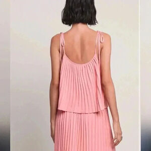 Our Eleven Six Valeria Cami in Spearmint boasts a lightweight feel with vertical pleats, a scoop neckline, and adjustable spaghetti straps that tie on the shoulders. Handcrafted by artisans in Peru.