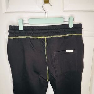 Elevenparis Stitched Mens Joggers Cotton Black Neon Lime Green Stitching Size Medium. Sweatpants with Contrast stitching. Drawstring elastic waist. 100% Cotton. NWT