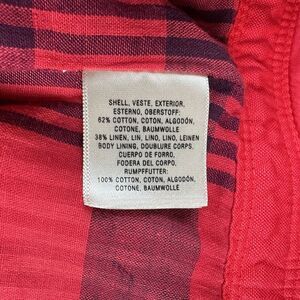 *Faint scuffing and discoloration throughout. Color is a bright red/pink. See photos for approximate non-stretched measurements and detailed condition. Item in photos is item for sale.