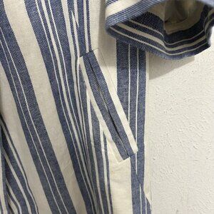 Elevenses Anthropologie North Channel Blue Striped Linen Blend Jacket Size S