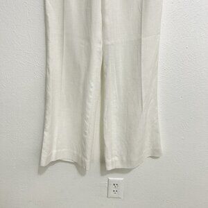 Elevenses Anthropologie Off-White Linen Wide Leg Pants Coastal Nautical Size 2