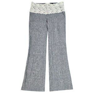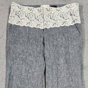 Elevenses Anthropologie The Brighton Linen Blend Gray Flare Pants Lace Overlay