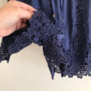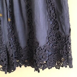 Features: Navy blue lace shorts, drawstring pull-on, high rise
