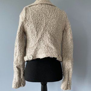 Elevenses creme boucle fuzzy jacket with gold zipper detailing!