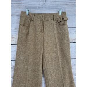 Elevenses Pants Women's 4 Brown Wool Silk Blend Flare Wide Leg Tweed Herringbone