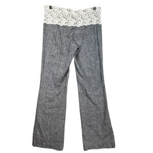 Elevenses The Brighton Anthropologie Women’s Blue Linen Blend Lace Wide Pants 6