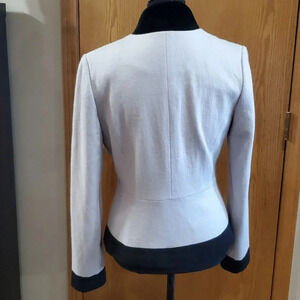 anthropologie brand elevenses blazer taupe grey wool blend with black details and sideways bow excellent condition no issues size 12