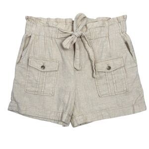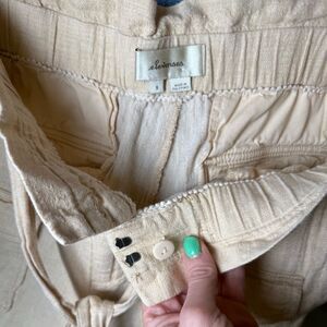 Elevenses Anthropologie Cream Linen Blend High Waisted Vacation Shorts