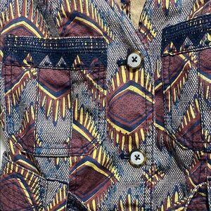 Elevenses Anthropologie Linen Blend Boho Vest Aztec Tribal Print Size S