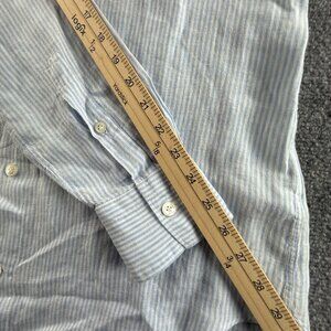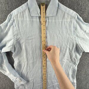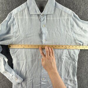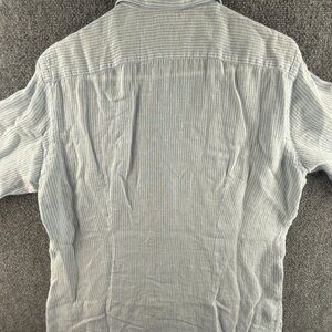 Eleventy Button Up Shirt Striped Blue White Long Sleeve Linen Woven Medium Adult