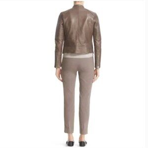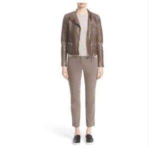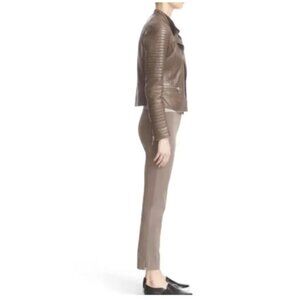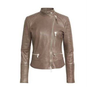 Eleventy Moto Leather Jacket Womens 50 XXL 2XL Gray Brown Asymmetric Motorcycle
