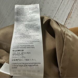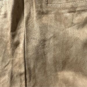 Eleventy Platinum Leather Suede Straight Leg Pants Size US 2 EU 40 Camel Brown. New with tag, has a defect. It has some leather marking as shown in pic located in the back. Belt loops, front and back pockets, zipper fly, straight leg, raw hem. Measurements are approximates only.