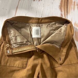 Eleventy Platinum Leather Suede Straight Leg Pants Size US 2 EU 40 Camel Brown