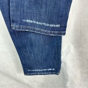 Eleventy Womens High Rise Straight Leg Blue Denim Wash Size US 2. New with tag, no hang tag but has a waist tag, no flaws. High rise, straight leg, blue denim wash with fading details, distressing style at the back of the pants and also on pockets and hemlines. Elastic waist at the back, zipper fly, 5 pocket styling. Measurements are approximates only. Made in Italy.