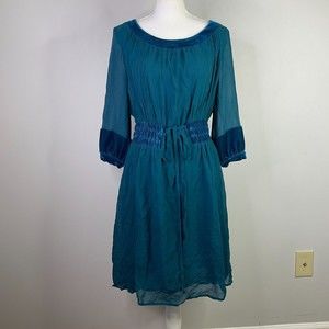 Eley Kishimoto Dress Women Size 4 Teal Blue Silk Sheer Lined Elastic Waist
