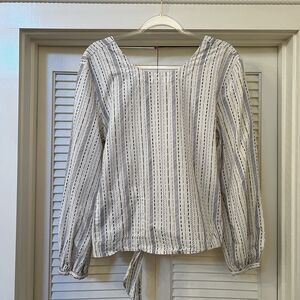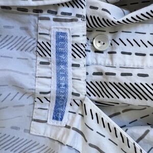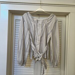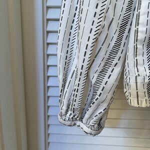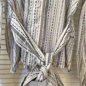 Eley Kishimoto White Black Geometric Blouse Tie Waist Cotton, Size 12