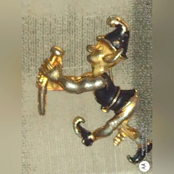 Elf Brooch Vtg Black Enamel Gold Tone Jewelry Pin 1.25"