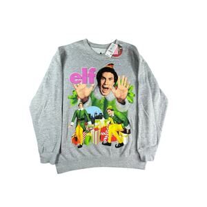 Elf Buddy Christmas Sweatshirt Mens Large Gray Crewneck Hybrid Apparel Crew NWT
