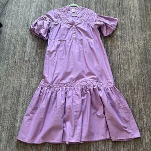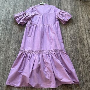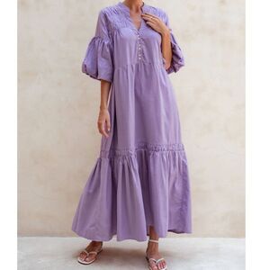 Elf Handmade 100% organic linen Oleana puff sleeve, tiered purple maxi dress, size S (fits like a M/L). pintuck details.
