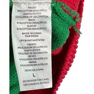 Elf Knit Christmas Sweater Womens Large Ribbed Crew Neck Striped Arms Top
