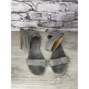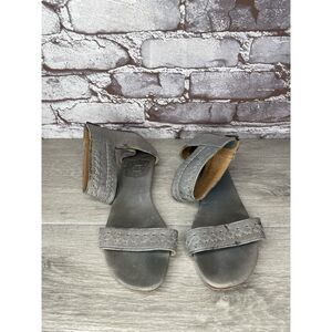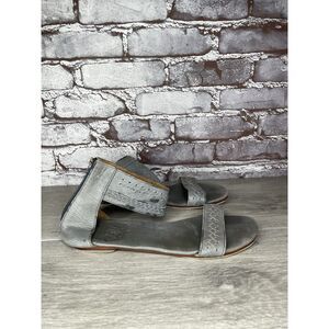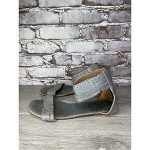 Selling Elf Midsummer Gray Leather Open Toe Back Zipper Ankle Strap Flats Shoes Women Sz 10M US/42EU