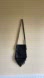 Beautifully handcrafted black leather bull hide fringe crossbody bag. UniSex style. Has long strap. The artisan is Dave Summers of Ashland Oregon Elf Mountain Leather. No pockets, single compartment, inside black suede. Both elegant and earthy, giving festival and medicine bag vibes. Was loved as a purse by me. The construction is strong, durable, forever lasting. Clean and clean smelling. There are natural flaws in the leather, with the exception of an indented line diagonal line of about 1" on the front, where it had rested against the edge of something, it rather blends in with the natural markings of the bag. If you are a crafts person, you could cover it with a button, broach, or ornament. Very good condition.