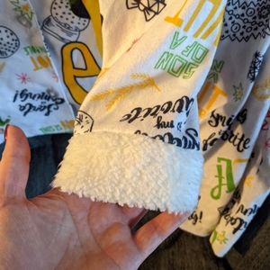 Kids' size Small Elf Jams...never worn. my daughter just didn't like them as much as I did. separate tops and bottoms, with fuzzy sleeve ends and collar. loose fit bottoms. we do have pets, so of you have allergies this is not for you. Sorry!