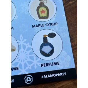 Holiday themed card from the Alamo Drafthouse, has different smells