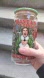 Festive glass with 'Santa's Coming' design. Includes a green lid with candy decorations.