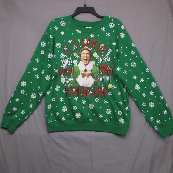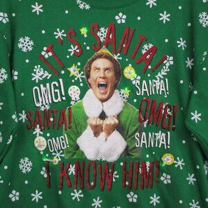 Elf Ugly Sweater Christmas Crew Neck With Working Lights Green Men Size | M