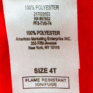 Elf on the Shelf footed one piece zip front pajamas/holiday wear for kids size 4T. Red and white with graphics and silver metallic/glitter snowflakes on the arms. Zips diagonally down the front. Bottom of feet have not slip texture. Great overall condition. I do not believe these were ever worn.